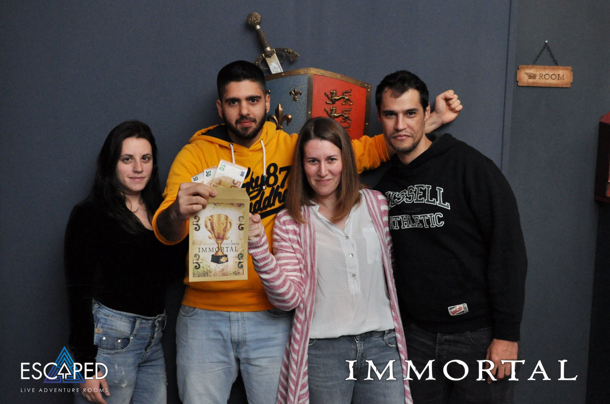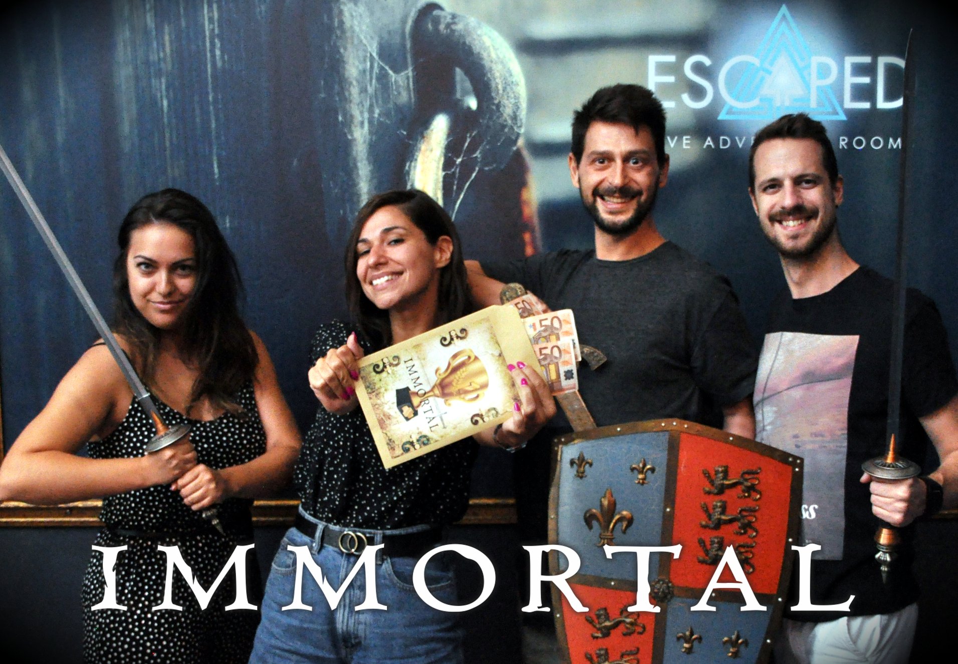 Ένα φανταστικό κάστρο με υπέροχα σκηνικά, πρωτότυπο σενάριο και γρίφους είναι το νέο γριφοδωμάτιο στο Αιγάλεω που ακούει στο όνομα “Immortal”. Για 80 λεπτά μια ομάδα εξερευνητών καλούνται να ανακαλύψουν όλα τα μυστικά δωμάτια του κάστρου και να επιστρέψουν πλούσιοι έχοντας βρει τον θησαυρό, ή τουλάχιστον να επιστρέψουν ζωντανοί, έχοντας σπάσει την κατάρα του “Αθάνατου”. Λειτουργεί μέχρι σήμερα. Δείτε το εδώ!