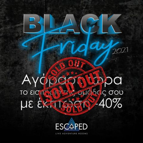 Κέρδισε έκπτωση 40% για εσένα και την ομάδα σου και παίξε σε όποιο Escape Room της Escaped θέλεις, αγοράζοντας το εισιτήριο σου από 24/11 έως και 30/11.